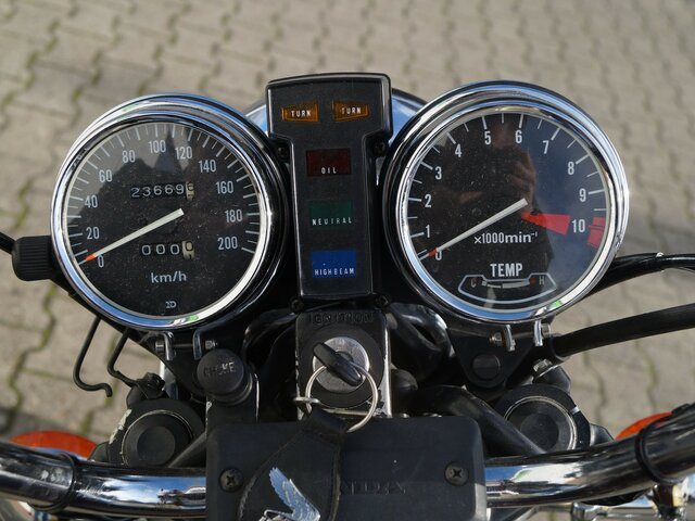 Die Honda CB 650 C RC05 zeigt sich technisch in gutem Zustand und wurde regelmäßig gewartet. Die 4 in 4 Abgasanlage sorgt für einen beeindruckenden Sound. Sie ist auf 25 kW gedrosselt und eignet sich daher auch für Führerscheininhaber mit einer entsprechenden Drosselung. Die HU/AU ist noch bis 06/2023 gültig, und die letzte Wartung wurde erst im Dezember 2022 durchgeführt, inklusive einer Vergaserüberholung und dem Austausch der Zündkerzen. Ein gepflegtes Bike, das noch viele Kilometer Freude bereiten wird.