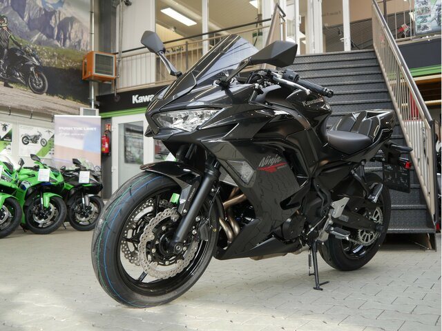 LED-Beleuchtung und dem TFT-Farbdisplay mit Smartphone-Konnektivität bietet die Ninja 650 aktuellste Technik. Sport-Version: getöntes Windschild sowie Soziusabdeckung bereits verbaut.