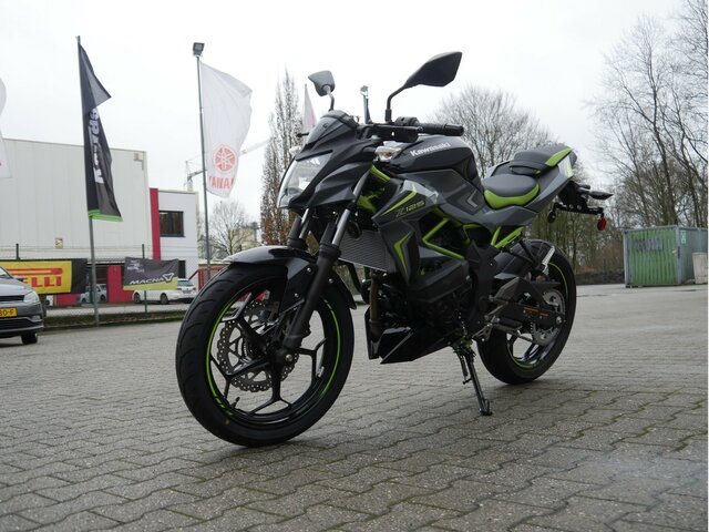 Mit Kawasakis einzigartiger Sugomi-Designphilosophie, die sofort ins Auge fällt, präsentiert sich das kleinste Mitglied der Z-Familie. Auffallen und ein starkes Naked-Bike-Statement setzen endash genau dafür ist sie da. Der freiliegende Gitterrohrrahmen verbindet sich mit der minimalistischen, aggressiven Z-Verkleidung und lädt zu sportlicher Fahrweise ein. Der 15-PS-Motor (11 kW) ist sowohl einsteigerfreundlich als auch so sportlich, wie man es von Kawasaki erwartet. Die Z125 kann mit dem A1-Führerschein oder mit dem Autoführerschein ab 25 Jahren (B196) gefahren werden und bietet ideale Voraussetzungen für Führerschein-Neulinge.