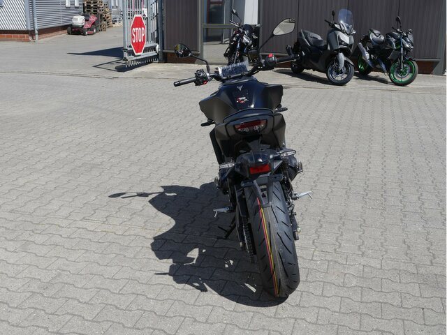 Der aggressive Look der MT-09 ist von der Dark Side of Japan DNA durchdrungen und soll das Gefühl der ikonischen, drehmomentstarken Beschleunigung des CP3 Motors verstärken. Nach dem Motto weniger ist mehrldblquote soll jedes einzelne Detail den aggressiven Style der MT-09 unterstreichen. Das kompakte und agile Fahrwerk sorgt für ein messerscharfes Handling und die neu definierte Sitzposition bietet das beste und engagierteste Fahrerlebnis der Hyper Naked Reihe. Technologien der nächsten Generation verbessern das Fahrerlebnis noch weiter, wie zum Beispiel bei der Version mit Y-AMT, aber auch schräglagenabhängige Assistenzsysteme, anpassbare Fahrmodi und ein brandneues, farbiges TFT-Display mit Smartphone-Konnektivität und Navigation zählen dazu.